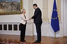 Following the 2022 general election, a coalition led by the Alliance of Independent Social Democrats, the Croatian Democratic Union and Troika reached an agreement on the formation of a new government, designating Borjana Krišto as the new Chairwoman of the Council of Ministers.[7] The Presidency officially nominated her as chairwoman-designate on 22 December; Bećirović and Cvijanović voted for, Komšić voted against.[8] Bećirović said after the vote that "It's time to give a chance to development, cooperation and dialogue in Bosnia and Herzegovina" and that the "Citizens and peoples of Bosnia must no longer be held hostages of permanent blockades, blackmails and quarrels."[9]