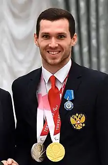 In 2015 Tasarov travelled to Glasgow to participate in his second IPC Swimming World Championships and defend his world titles in the 50m and 100m freestyle events. He entered six events, winning five gold medals and ended as the tournament's third most successful competitor behind Brazil's Daniel Dias (7 gold, 1 silver) and Belarusian Ihar Boki (6 gold, 1 silver).[10] In his favoured 50m freestyle S8, he took gold setting a Championship record of 25.34, just outside his own world best. In three of his other medals world records were broken.[11] He swam a time of 55.84 in the 100m freestyle S8 beating his own record set in Eindhoven, and he was part of two world record breaking team relay teams, the 4 × 100 m freestyle relay and the 4 × 100 m medley relay.[12][13][14] He completed his medal haul with gold in the 100m butterfly S8.[2]