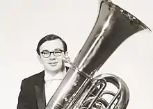 He began piano lessons when he was eight years old. When he was 10, his family moved to Tucson, Arizona. He started playing guitar when he was 12. His idols were Elvis Presley and Duane Eddy. He started playing Sousaphone at age 15 at Tucson High School, because band director Bucky Steele[1] told him that he had to be in the marching band in order to be in the school jazz band. At 15, he became a professional musician and joined the American Federation of Musicians, AFL-CIO. At 16, he started playing string bass. From 1961 through 1967, he played electric guitar and string bass with jazz groups in Tucson. From 1964 through 1967, he played tuba in the Tucson Symphony Orchestra and the Tucson Pops Orchestra.