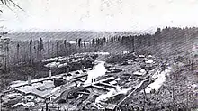 The factory in Taylor, Washington, was near heavy glacial clay deposits in an 80-foot (24 m) high bank used to make the brick, and could produce 100,000 bricks a day in 1907.[3] Hydraulic mining was used to extract clay from the hill.[4] The factory produced 58 million bricks in 1917.[5] It was closed when Taylor was condemned to become part of Seattle's Cedar River watershed in 1947.[1][6][7]