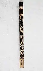 The dentsivka (Ukrainian: Денцівка) is a woodwind musical instrument with a fipple (mouthpiece). In traditional instruments, the tuning varies with the length of the tube. It is made in a variety of different sizes: the piccolo (tuned in F), prima (in C), alto (in G), tenor (in F), and bass (in C).