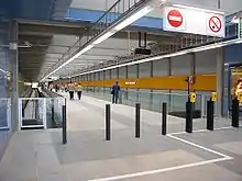 Depo Hostivař (Czech pronunciation: [ˈɦoscɪvar̝̊]) is a Prague Metro station and terminus of Line A. It is located on Černokostelecká street, which forms the border between Strašnice and Malešice in Prague 10. The station was constructed in the building of an existing metro depot and was opened on 27 May 2006 as the eastern terminus of the extension from Skalka.[1]