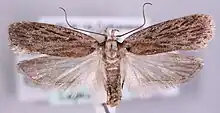 The wingspan is 20–25 mm. Adults are on wing from June to July.[2]