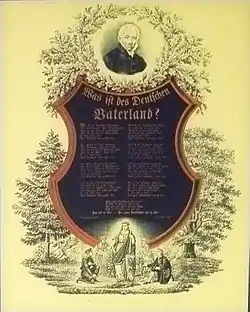 As the original tune did not become popular, Gustav Reichardt wrote a new melody in 1825.[2] This new tune made the song very popular among the German population that desired the transformation of the German Confederation into a united empire, instead of the previous situation where there were multiple duchies and kingdoms.