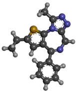 - ↑ EP 0776892, Hiroshi K, Syuji E, Hideaki S, Minoru M, Kenichi O, "Thienylazole compound and thienotriazolodiazepine compound", published 4 June 1997, assigned to Yoshitomi Pharmaceutical Industries, Ltd.