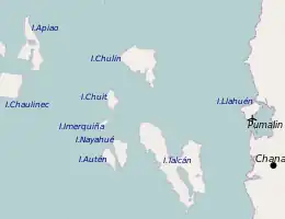 The six main islands are Auten, Chuit, Chulin, Imerquiña, Nayahue and Talcan. There are several smaller islands, including Silla del Diablo, which lies halfway between Chulin and the mainland.