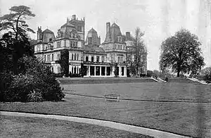 Income tax was first introduced in Great Britain in 1799 as a means of subsidising the Napoleonic Wars.[33] While not imposed in Ireland, the rate of 10% on the total income, with reductions only possible in incomes below £200, immediately hit the better off. The tax was repealed for a brief period in 1802 during a cessation in hostilities with the French, but its reintroduction in 1803 set the pattern for all future taxation in Britain.[34] While the tax was again repealed following the victory at Waterloo, the advantages of such taxation were now obvious. In 1841, after the election victory of Sir Robert Peel, the exchequer was so depleted that the tax made a surprise return on incomes above £150, while still known as a "temporary tax".[34] It was never again repealed. Throughout the 19th century, tax thresholds remained high, permitting the wealthy to live comfortably while paying minimal tax; until in 1907, H. H. Asquith introduced 'differentiation', a tax designed to be more punitive to those with investments rather than an earned income, which directly hit the aristocracy and gentry. Two years later, Lloyd George in his People's Budget of 1909 announced plans for a supertax for the rich, but the bill introducing the tax was defeated in the House of Lords. This respite for owners of large country houses, many of them members of the House of Lords, was brief and ultimately self-defeating: the bill's defeat led to the Parliament Act 1911 which removed the Lords' power of veto.[35] In 1932, the threat through taxation to the nation's heritage was recognized, and appeals were made for repairs to National Trust and historic properties by their tenants to be tax-deductible; however the pleas fell on deaf ears.[36]