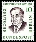 The first stamps were issued as "Deutsche Post", in 1952 the inscription was changed to "Deutsche Post Berlin", and three years later to "Deutsche Bundespost Berlin".[8] Many stamps had the same appearance as the stamps of the Federal Republic of Germany with just the inscription changed, while others were distinctly different.