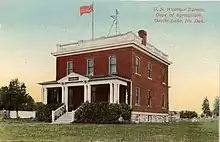 The first post office was founded November 15, 1882, and was originally named Creelsburg.[7] It was founded by Lieutenant Heber M. Creel, a West Point graduate and topographical engineer stationed at nearby Fort Totten. After resigning from the U.S. Army, he surveyed the land and established the townsite.
