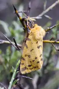 Diacrisia purpurata, the purple tiger, is a moth of the subfamily Arctiinae. The species was first described by Carl Linnaeus in his 1758 10th edition of Systema Naturae. It is found in Europe, Anatolia, Syria, Transcaucasus, Central Asia (mainly in Kazakhstan and Kyrghyzstan), southern Siberia, Mongolia, Amur Region, northern China, Korea and Japan (Honshu).