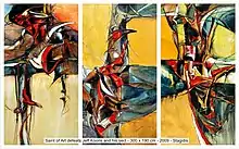 Diamantis Stagidis (born 1959) is a contemporary artist; primarily a painter in oils. He lives in Kavala. Although his artwork seems abstract, nothing is random, except for the wet colour. The lines dance, composing abstract figures reminding the viewers of familiar scenes moving at the edge between the remembrance and oblivion. Therefore, the real meaning of the art is what cannot be said, the ineffability. Through Stagidis, The new movement of neo-renaissancian abstract art begins.