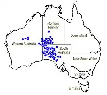 It is found in the IBRA regions of Central Ranges, Gibson Desert, Great Sandy Desert, and Little Sandy Desert.[4]