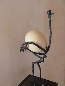 His sculptures are sometimes amusing or picturesque. For example, L' Autruche (The Ostrich) owed its existence to the fact that his friend Dr. Binet, not knowing what to do with an ostrich egg, gave it to Diego who integrated inside an ostrich that he dreamt up and sculpted. Diego Giacometti's animal art was rich. Along with familiar animals he liked to have animals that symbolized force, power and beauty such as the heads of lions, wolves and horses.