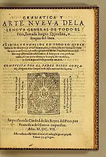 - ↑ "Grammar and New Art of the Common Language of All of Peru, Called Quechua or Language of the Inca". World Digital Library. Library of Congress.