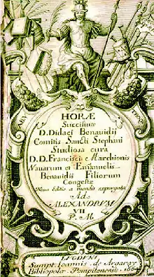 Diego de Benavides, Horae succisiuae siue Elucubrationes, title page of the 1664 edition