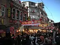 Dihua Street (Chinese: 迪化街; pinyin: Díhuà Jiē) is a street located in Dadaocheng, Datong District, Taipei, Taiwan, winding from the south of the district to the north near Dalongdong. The street, then known as Centre Street (中街), was constructed during the 1850s, when many commercial entities belonging to Quanzhou-originating owners moved in from Bangka. Since then and throughout the rest of the 19th century, Dihua Street has been an important centre for commerce in Taiwanese products and produce such as Chinese medicinal herbs, fabrics, incense materials, and for the post-processing of Taiwanese tea.[1][2]