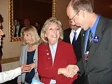 Democrats were heavily targeting 3rd district Republican incumbent Jon Porter. Their top candidate was Clark County prosecutor Robert Daskas, but Daskas dropped out in April for family reasons. Democrats then recruited Titus, who had won the district in her unsuccessful 2006 run for governor. Titus defeated Porter in November, 47% to 42%, becoming the first Democrat to represent the district. She was a major beneficiary of the overall anti-Bush sentiment in the Las Vegas area. She was elected Regional Whip in the 111th Congress.[5]
