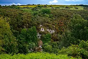 Dingle Glen (Irish: An Fhothair)[1] is a steep-sided and V-shaped valley "gash",[2] or glen, extending for 550-metres through the bedrock of the lowlands of the Dublin Mountains, located between Carrickmines and Kilternan.[3] In an ecological impact assessment for a proposed development nearby, Dingle Glen was categorised as "a secluded mature broadleaf woodland, mixed with rocky outcrops, within a glacier meltwater channel, thus providing a diversity of habitats within a small undisturbed area".[4]