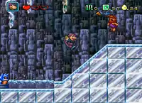 While the majority of the game remains unchanged from one region release to another, a few graphic and gameplay changes exist between the English and original Japanese versions of the game. The cavewomen enemy character "Cindy" was originally designed as a large-busted woman whose character sprite was altered for the North American release due to Nintendo of America's policy against overly-sexual depictions of women on their consoles.[10] The Japanese version also includes the option to select "Normal" or "Hard" difficulty settings at the beginning of the game. While the Hard setting represents the default play mode on the English version, the Normal setting grants the player five health points instead of three, as well as unlimited continues.[10]