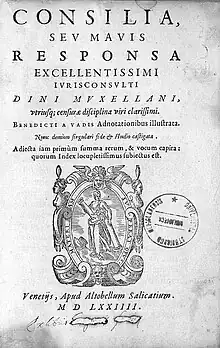- Consilia (in Latin). Venice: Altobello Salicato. 1574.
