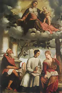Il Moretto, Madonna with Child in glory with Saint John the Evangelist, Blessed Lorenzo Giustiniani and the allegory of Divine Wisdom, 1545-1550
