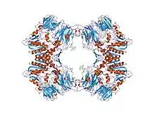 In molecular biology, the dipeptidyl-peptidase IV family is a family of serine peptidases which belong to MEROPS peptidase family S9 (clan SC), subfamily S9B (dipeptidyl-peptidase IV). The protein fold of the peptidase domain for members of this family resembles that of serine carboxypeptidase D, the type example of clan SC. The type example of this family is Dipeptidyl peptidase-4.[1]