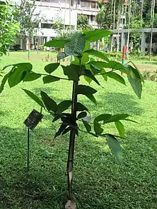 Dipterocarpus turbinatus (Khmer chhë tië:l dâ:ng;[3] India gurjan,[4] gurjun,[4] gurgina; Tagalog mayapis;[5] Chinese 羯布罗香 jie bu luo xiang;[6] Malay language keruing,[4] the last an international name for Dipterocarpus wood) is a species of tree in the family Dipterocarpaceae native to north-eastern India and mainland Southeast Asia, and cultivated in surrounding regions. It is an important source of the wood known as keruing, and is often used in the plywood industry.[7]