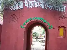 Dirgheswari Mandir (Assamese pronunciation: [dirɡʱeswori dewaloj]) is a temple situated in the northern banks of the river Brahmaputra in North Guwahati, Assam, India. Many ancient images made on rocks existed along with the temple. Brick temple was Built by Ahom king Swargadeo Siva Singha, Dirgheswari temple is considered as a Shakti Peetha for Shakti Worship. The main attraction of Dirgheswari temple is the annual Durga Puja celebrations, in which devotees from far of places use to attend.
