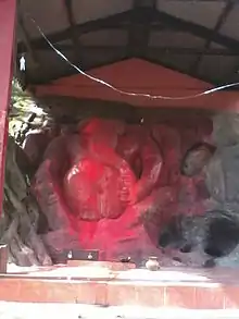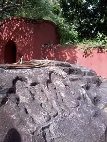 Just like any ancient temples or Hindu holy sites, one can find a big image of Lord Ganesha engraved in the rock, at the entrance of the temple. According to Hindu beliefs before performing any religious rites, first prayers should be offered to Lord Ganesha. There are two foot prints engraved in the rocks near the temple, believed to be of Goddess Durga. There is also a stone structure, which the local believes as boat, which is used by Apasaras or nymphs for water sports in a nearby water pond.