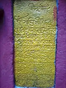 Lands were granted in the name of the temple and priests were appointed for the management of the daily functions of the temple. A rock inscription is present at the back entrance of the Temple in which the names of Ahom King Swargadeo Siba Singha and the Ahom Viceroy Tarun Duwarah Barphukan are present, issuing the royal order for the construction of temple and grants of lands in the name of Dirgheswari Temple. During the royal tour of Ahom king Swargadeo Rajeswar Singha in 1756 CE, the king visited the temple and granted more lands and men for the proper maintenance of the temple. The king also presented a silver Japi or hat, which is still used to cover the main idol of Devi Durga in the temple.[2]