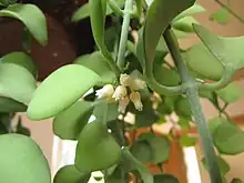Dischidia nummularia is an epiphytic climbing plant that belongs to the genus Dischidia.[1] It has tiny, opposite lens-shaped leaves, and is frequently seen on the trunks of trees. In the wild it is found in India, China, Indonesia, Laos, Thailand, Vietnam, Myanmar, Malaysia, and Australia.[2]