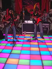 The tiles may also have pressure sensors as for a dance mat so the pattern displayed or the music or other effects depend on the dancers.[3]
