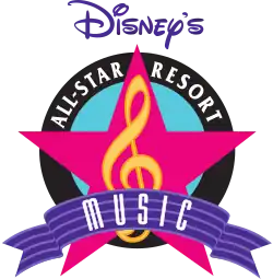 Disney's All-Star Music Resort is a resort that is part of the Walt Disney World Resort. It is one of five resorts in the Value Resort category, along with Disney's All-Star Sports Resort, Disney's All-Star Movies Resort, Disney's Pop Century Resort, and Disney's Art of Animation Resort. The resort is located on the southern portion of the Walt Disney World Resort property near Disney's Animal Kingdom. Disney's All-Star Music Resort is a 1,604-room hotel featuring giant icons that pay homage to classic music genres—including Broadway show tunes, calypso, country, jazz, and rock n' roll.[1] It was the first Disney Value Resort to feature family suites.[1] As a characteristic with all Disney Value resorts, the resort features a music theme with giant novelty items such as guitars, trumpets, and drums.[1] The resort is designated as part of the Florida Green Lodging Program.[2]