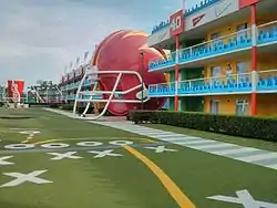 Disney's All-Star Sports Resort is a resort that is part of the Walt Disney World Resort. It is one of five Resorts in the Value Resort category, along with Disney's All-Star Music Resort, Disney's All-Star Movies Resort, Disney's Pop Century Resort, and Disney's Art of Animation Resort. All three All-Star Resorts are located on the southern portion of the Walt Disney World property (the only portion that is located in Osceola County; the rest of Walt Disney World is located in Orange County) and has a sports theme. As is characteristic of all Disney Value resorts, the property is decorated with giant novelty items, such as SurfBoard Bay, the baseball-themed Grand Slam Pool and a football field, and a giant football helmet.[1][2][3]