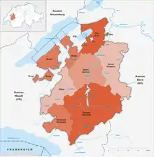 - Thun with capital Thun, made up of all of the former administrative district of Thun