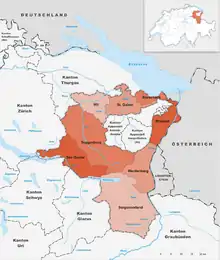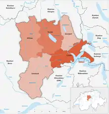 The canton abolished the district level in 2003, but it remains divided into eight constituencies (Wahlkreise) without administrative significance: