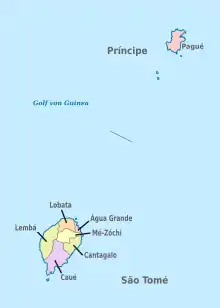 São Tomé and Príncipe is divided into seven administrative districts since 1980.[1] Six are located on the main island of São Tomé while one (Pagué) covers the smaller island of Príncipe. Since 1995, the Pagué District has been replaced by the Autonomous Region of Príncipe.[2]