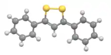 - ↑ E. Uhlemann; F. Weller (1992). "3,5-Diphenyl-1,2-dithiolium-hydrogensulfat—Bildung und Struktur" [3.5-Diphenyl-l,2-dithiolium Hydrogensulphate—Synthesis and Structure]. Z. Naturforsch. B (in German). 47 (11): 1501–1504. doi:10.1515/znb-1992-1102. S2CID 95736614.