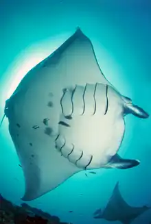 Among the many marine families represented are pufferfish, fusiliers, jackfish, lionfish, oriental sweetlips, reef sharks, groupers, eels, snappers, bannerfish, batfish, humphead wrasse, spotted eagle rays, scorpionfish, lobsters, nudibranches, angelfish, butterflyfish, squirrelfish, soldierfish, glassfish, surgeonfish, unicornfish, triggerfish, Napoleon wrasse, and barracuda.[8][9]