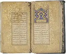 The Diwan, or Divan (Persian: دیوان), is a collection of poems written and compiled by Nasir Khusraw (10041088 AD). Khusraw composed most of his poems in the Valley of Yumgan, a remote mountainous region in Badakhshan (in present-day Afghanistan). The Divan contains around 11,000 verses of Khusraw's own poetry, reflecting philosophical, religious, and personal themes.[1]