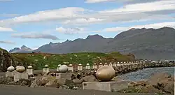 Approximately 900 m west of the town is a work of art named "Eggin í Gleðivík" [ˈɛcːɪn iː ˈklɛːðɪˌviːk] (The Eggs of Merry Bay) by Sigurður Guðmundsson. The work is a replica of the eggs of 34 nesting birds in the area, and was installed in the summer of 2009.[1]
