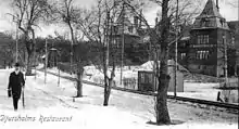 Restauranten was also a name for a railway stop at Djursholmsbanan on the Djursholms Ösby-Eddavägen line. The stop was next to the restaurant and named for it. It was situated at the street Henrik Palmes allé.[5] In 1968, the railway stop was renamed Djursholms torg.[6] The railway line was however disbanded in 1976 and replaced by buses.