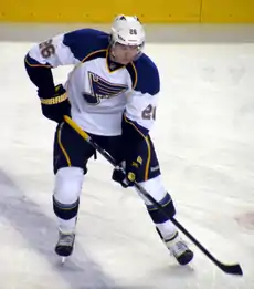 On 3 April 2013, he signed a three-year, entry-level contract with the St. Louis Blues, and was assigned to the Chicago Wolves.[1] He was recalled to the Blues roster on 9 April.[5]