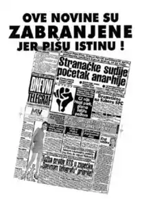 Poster that appeared all over Belgrade on 14 November 1998 in the wake of Dnevni telegraf's exile