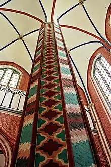 is an octagonal burial chapel for 13 dukes of Mecklenburg, built or reconstructed in 1420 using Romanesque columns and capitals from around 1240. The location behind the high altar was a privileged burial place. Note the ornamental carvings along the balustrade. The wall paintings on the Octagon, restored in 2004, depict King Albrecht III of Sweden (died 1412), Duke Heinrich III (died 1383), Duke Johann IV (died 1422) as well as Duke Magnus I von Mecklenburg (died 1384).