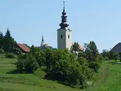 The local church is dedicated to Saint Oswald (Slovene: sveti Ožbolt) and belongs to the Parish of Prevorje. It dates to the 15th century with major 19th-century rebuilding.[6]