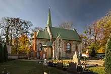 There is a neogothic palace near the village, built in 1720 for the Sehher-Thoss family and rebuilt 1857–60. The palace gardens were designed by Gustav Meyer, architect of many of Berlin's finest gardens, and contain many fine old trees. The palace, destroyed by the Russian army in 1945, is now in private hands and being renovated.
