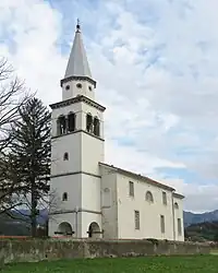 The local church is dedicated to Saint Peter and belongs to the Parish of Vipavski Križ.[3] It dates to 1641 and contains paintings by the Slovenian Baroque painter Anton Čebej from 1768.