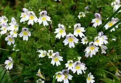Eyebright was used for eye infections, owing to the supposed resemblance of its flower to an eye.