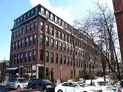 The E. P. Dodge Building is a historic building at 19-23 Pleasant Street in Newburyport, Massachusetts. The Italianate five story brick building was built in 1873 by Elisha P. Dodge, a shoemaker, for use as a factory. When first built it was only four stories, but when Dodge enlarged the premises in 1880, the mansard section was added on top (in addition to extending the building to the rear as far as Prince Place). The building remained in use as a shoe factory until the 1930s, and is now used for commercial and light industrial purposes.[2]